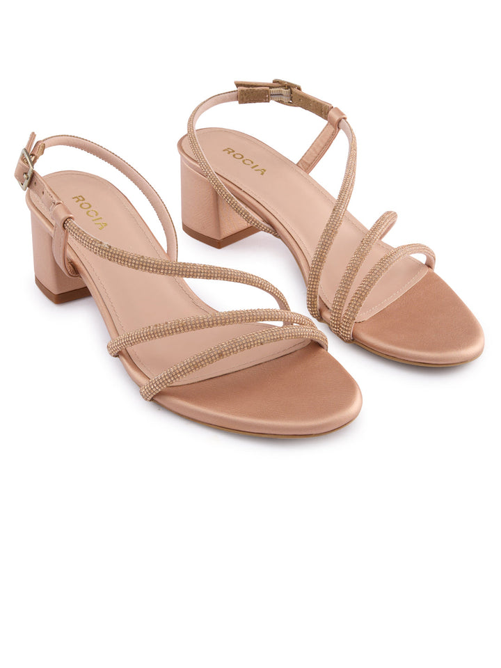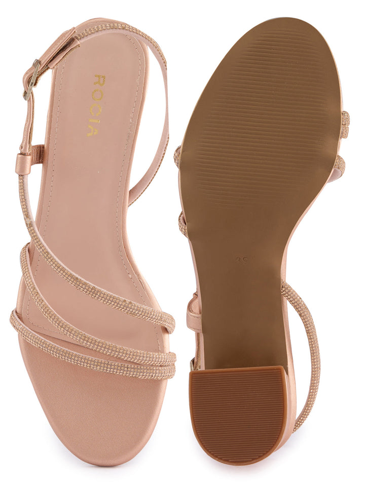 Elevate your evening look with these diamond-embellished block heel sandals. The glimmering stones add just the right amount of sparkle to any outfit. Balanced on sturdy block heels, they provide both style and support. Perfect for parties, celebrations, and special nights out.