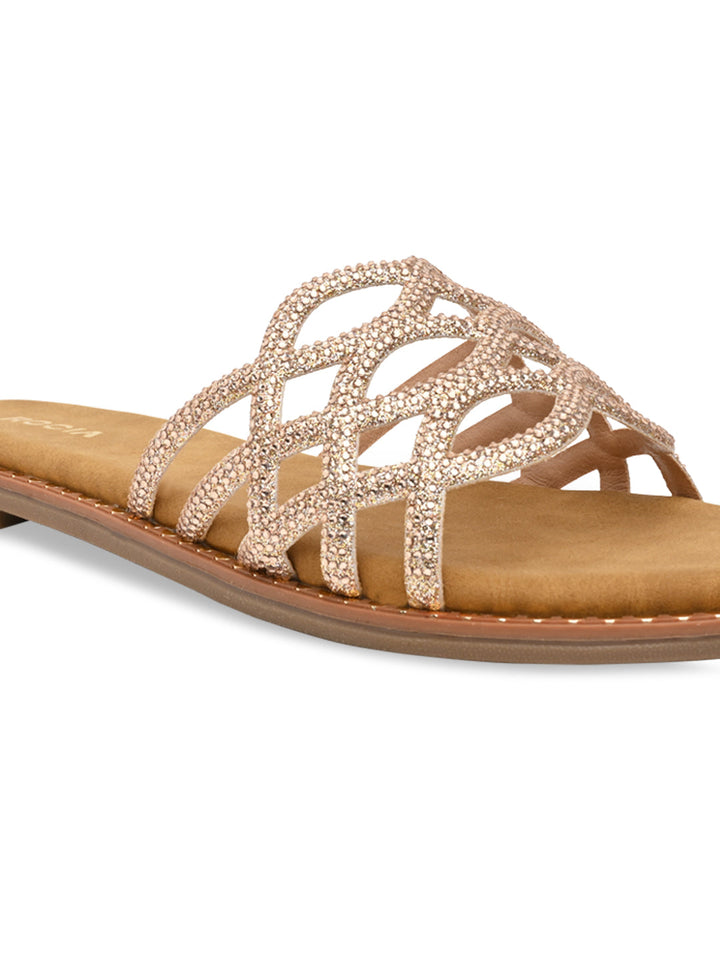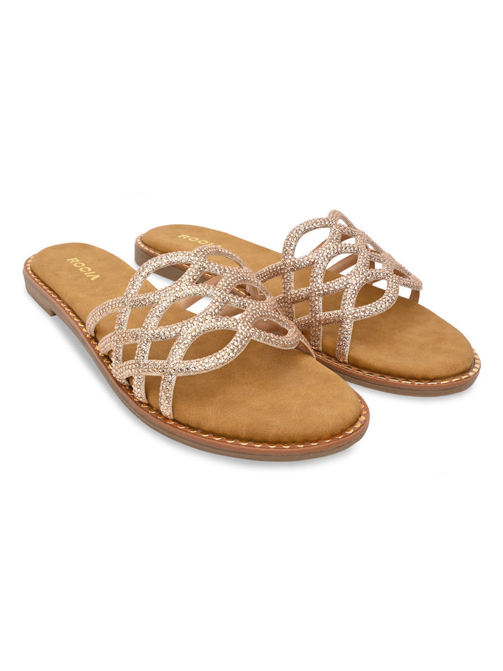 Shine bright with these diamond-embellished criss-cross flats that spell pure sophistication. The sparkling details add elegance, while the crossover straps provide a secure fit. Perfect for festive occasions or evening wear. Step into glamour and grace with every stride.