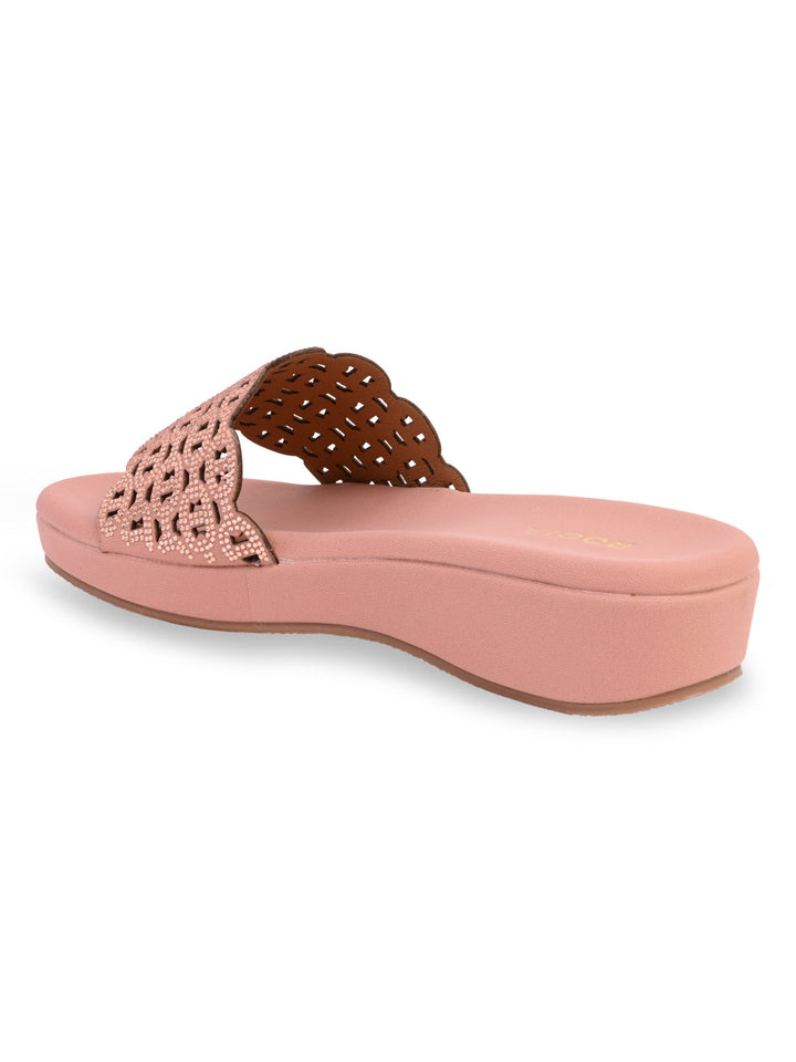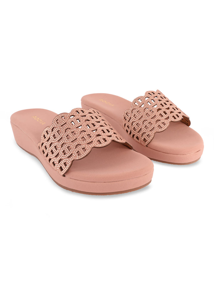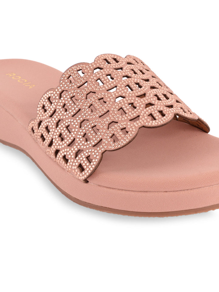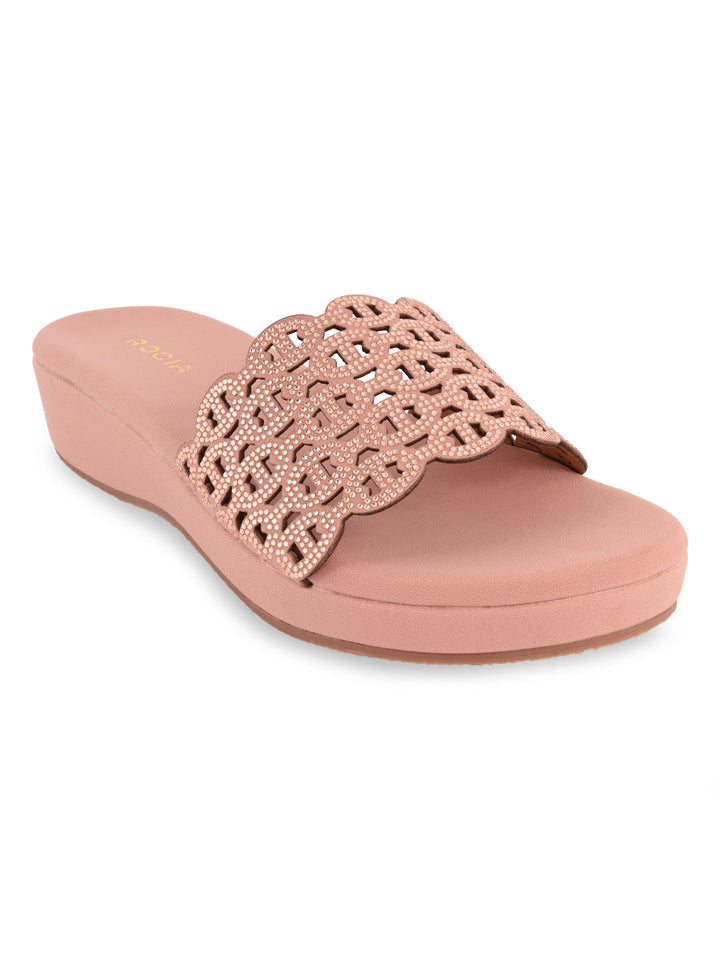 Step into sparkle with Women Diamond Embellished Sliders from Rocia by Regal, designed for festive and ethnic charm. Crafted from synthetic material with a sturdy TPR sole, these wedge flats feature diamond-inspired embellishments across a sleek, open-toe strapless design. Perfect for parties, celebrations, or adding a little glam to your outfit.