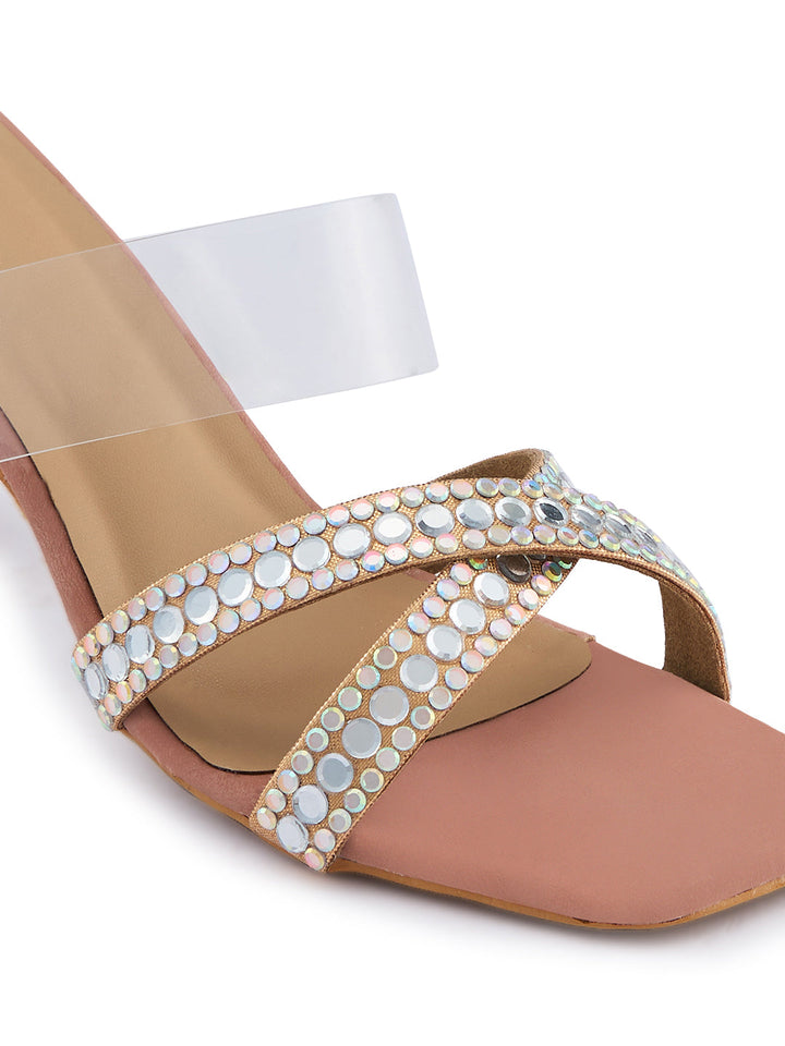 Go bold and playful with these funky criss-cross stilettos adorned with diamond studs. The dynamic strap design adds a fun twist to classic heels, while the sparkle keeps things glamorous. Perfect for parties and high-fashion looks, they bring a burst of confidence to your style. Walk tall, shine brighter.