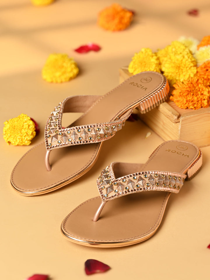 Bring effortless elegance to your everyday wear with these embroidered thong flats. The delicate threadwork adds a touch of grace, while the minimal design keeps it trendy and versatile. Lightweight and easy to slip on, they’re perfect for casual or festive occasions. A comfortable and chic addition to your shoe collection.
