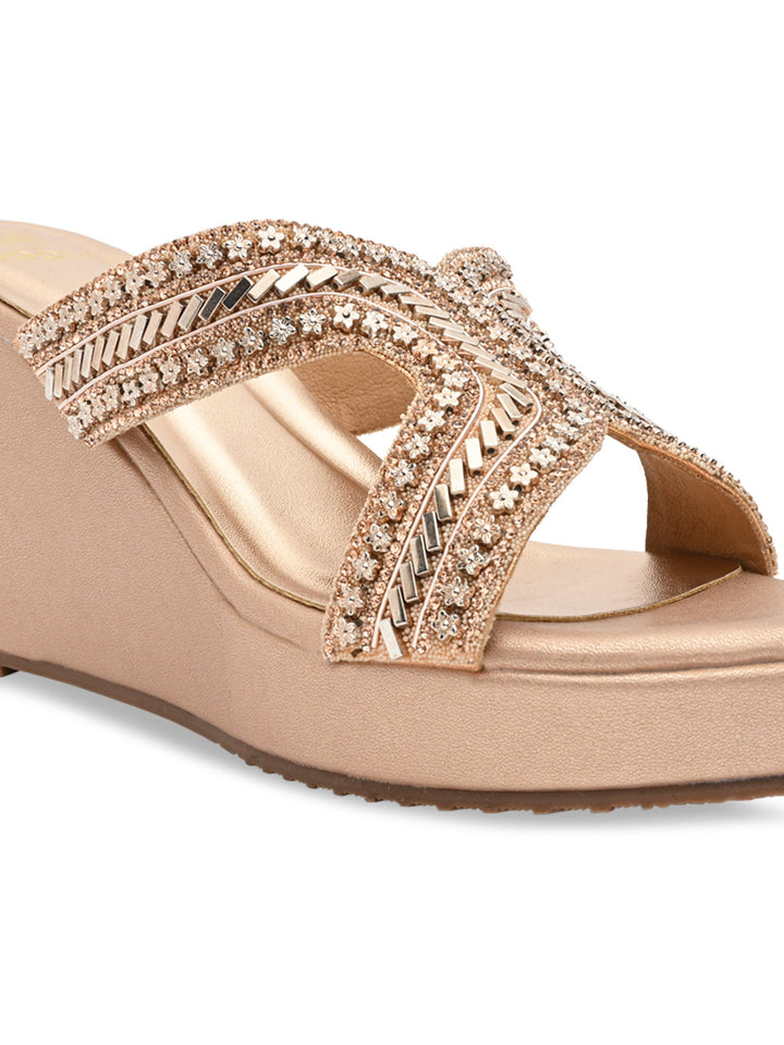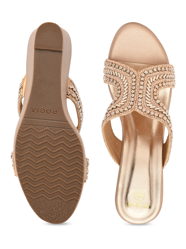 Showcase elegant artistry with these H-embroidered fancy platforms. The elevated design and luxurious embroidery create a standout silhouette. Perfect for festive occasions, they offer both style and balance. Add these to your collection for a refined yet fashionable statement.