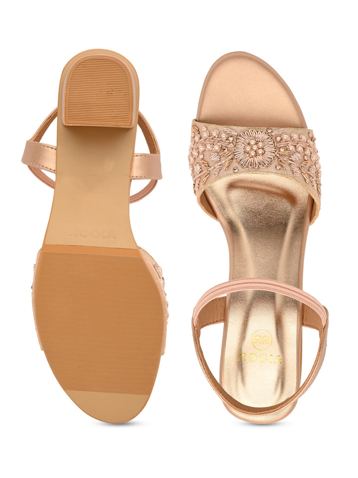Exude festive flair in these hand-embroidered block heel sandals. The detailed craftsmanship showcases cultural artistry with a fashionable twist. Soft padding and balanced heels make them easy to wear all day. A stunning companion for ethnic celebrations or dressy gatherings.