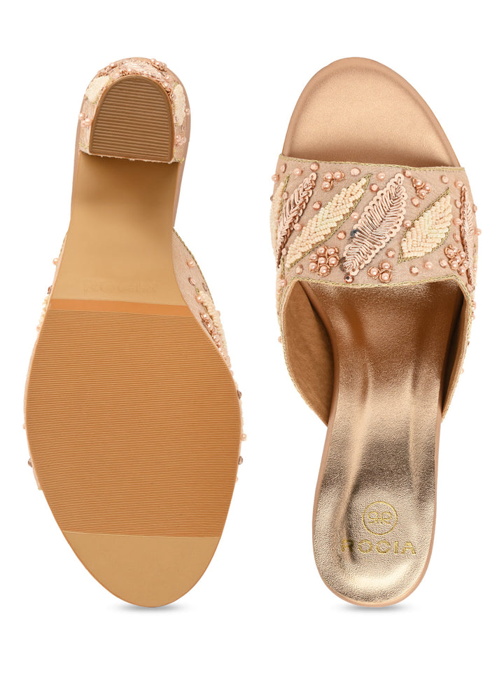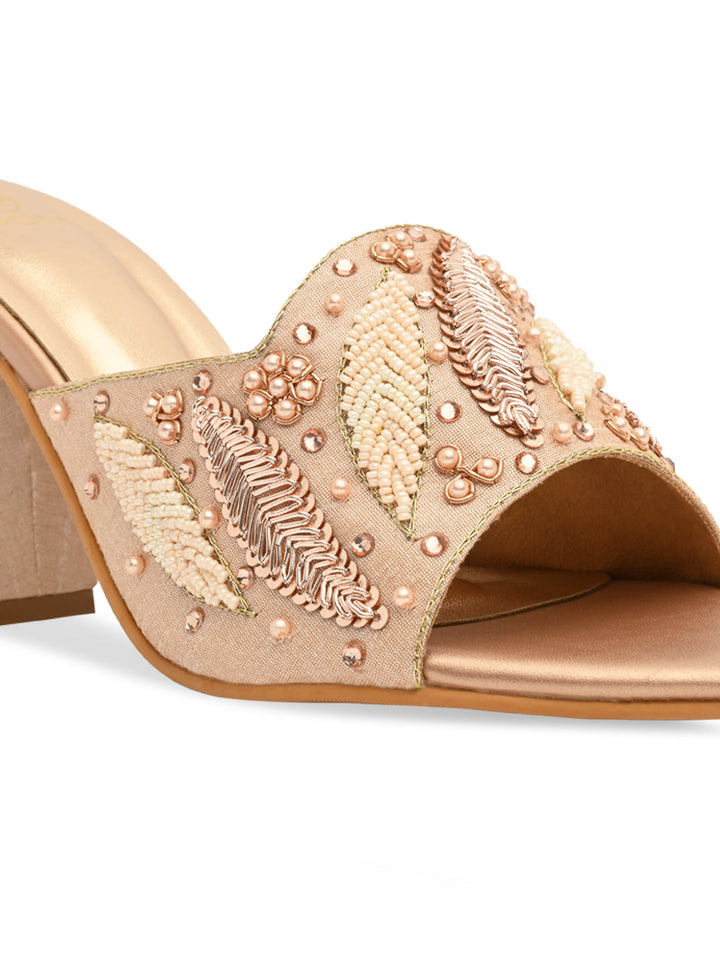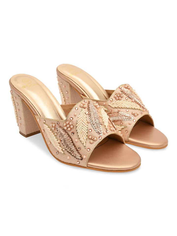 Celebrate craftsmanship with these hand-embroidered high block heels. Each stitch reflects detailed artistry and timeless charm. The balanced heel height makes them suitable for long wear, combining grace with comfort. A perfect pick for ethnic events or festive celebrations.