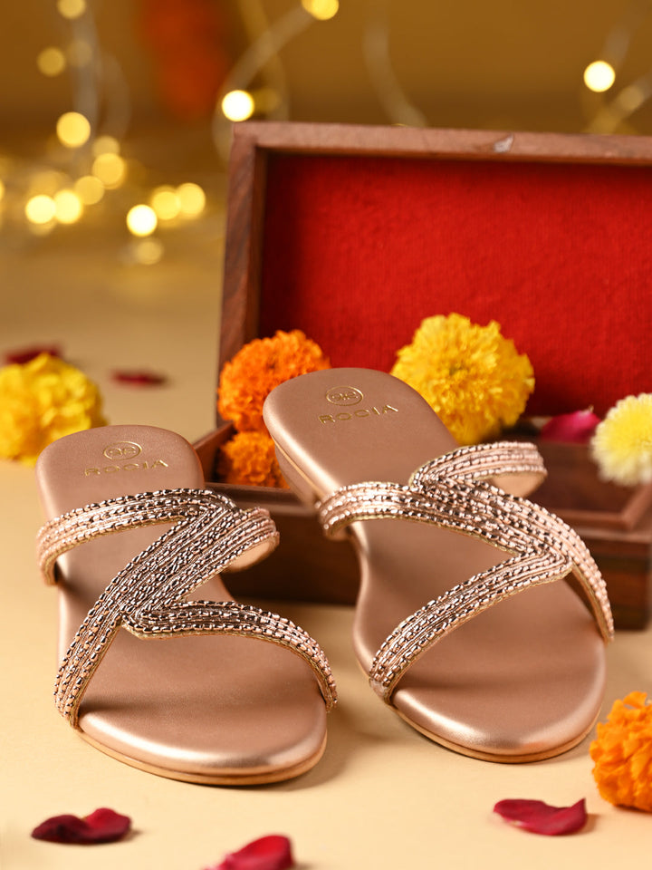 Step into culture-inspired fashion with these zig-zag hand-embroidered flats. The bold stitching and artistic patterns create a statement look that stands out effortlessly. Soft cushioning ensures day-long comfort without compromising on style. Ideal for pairing with ethnic wear or casual ensembles alike.