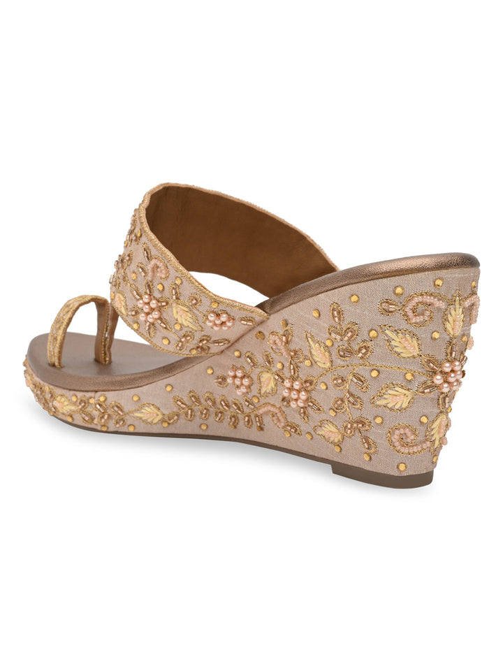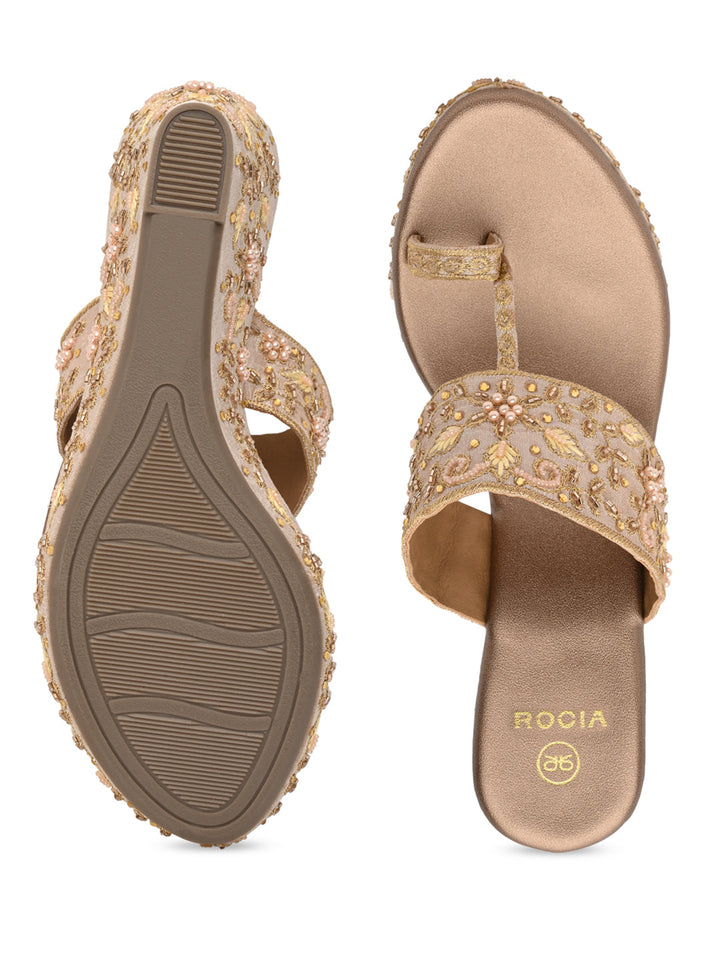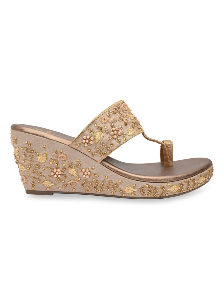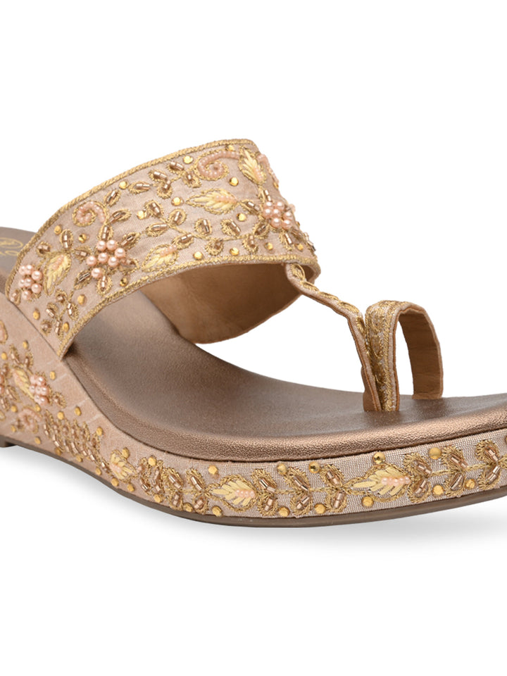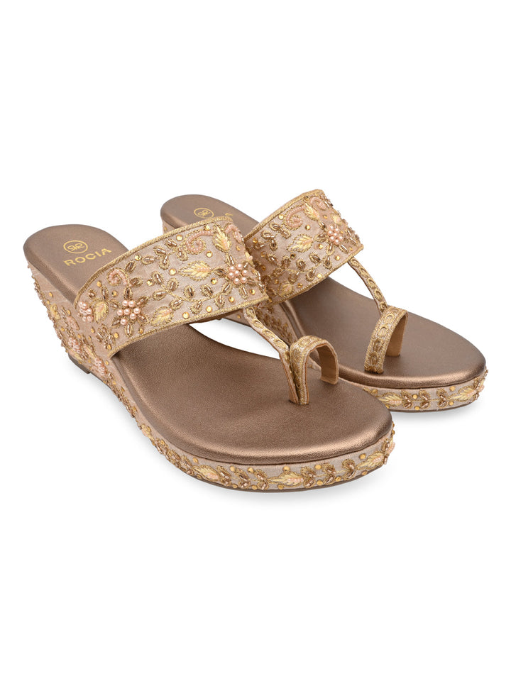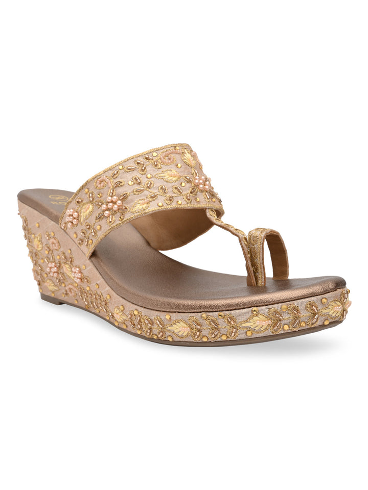 Turn heads with these heavily embroidered one-toe platforms that speak of craftsmanship and sophistication. The intricate designs and comfortable base make them ideal for long celebrations. Their ethnic charm pairs wonderfully with festive outfits. Step up your traditional look effortlessly.