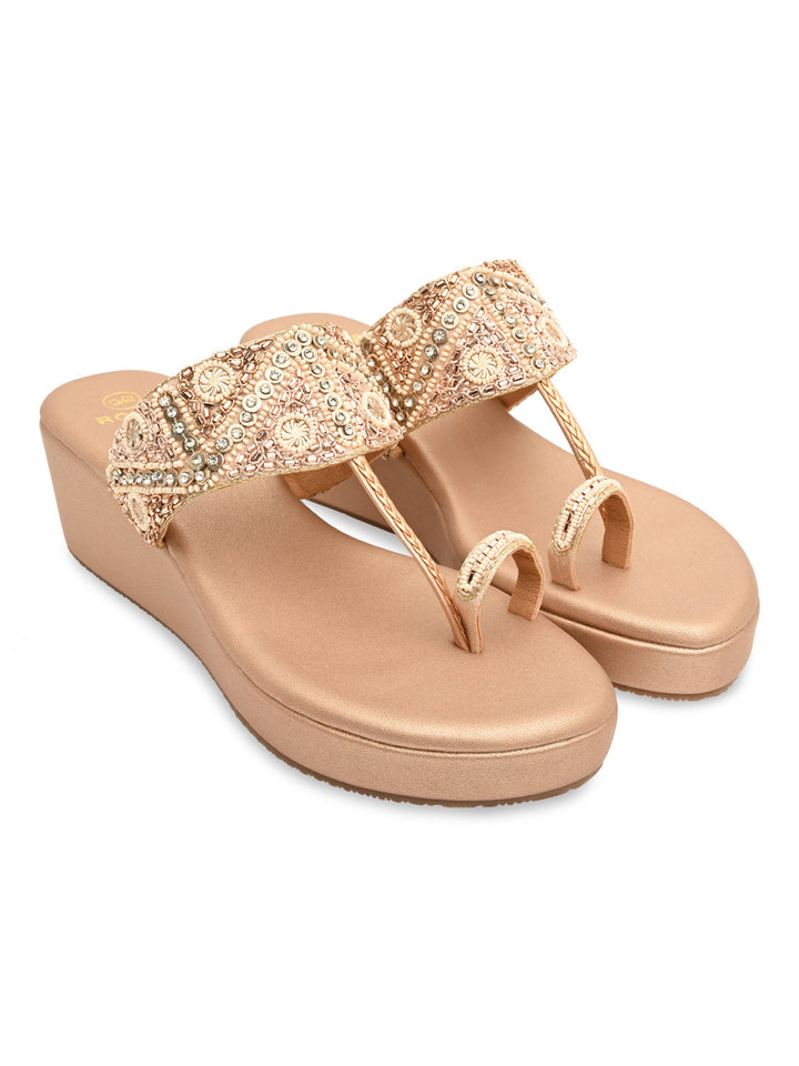 Redefine elegance with these one-toe embroidered wedges that combine traditional charm and modern style. The embroidery highlights fine craftsmanship, while the wedge heel offers easy comfort. Great for both festive wear and casual chic looks. Walk in style with poise and grace.