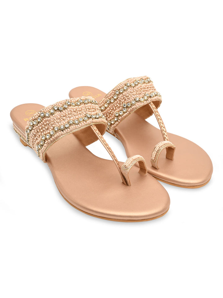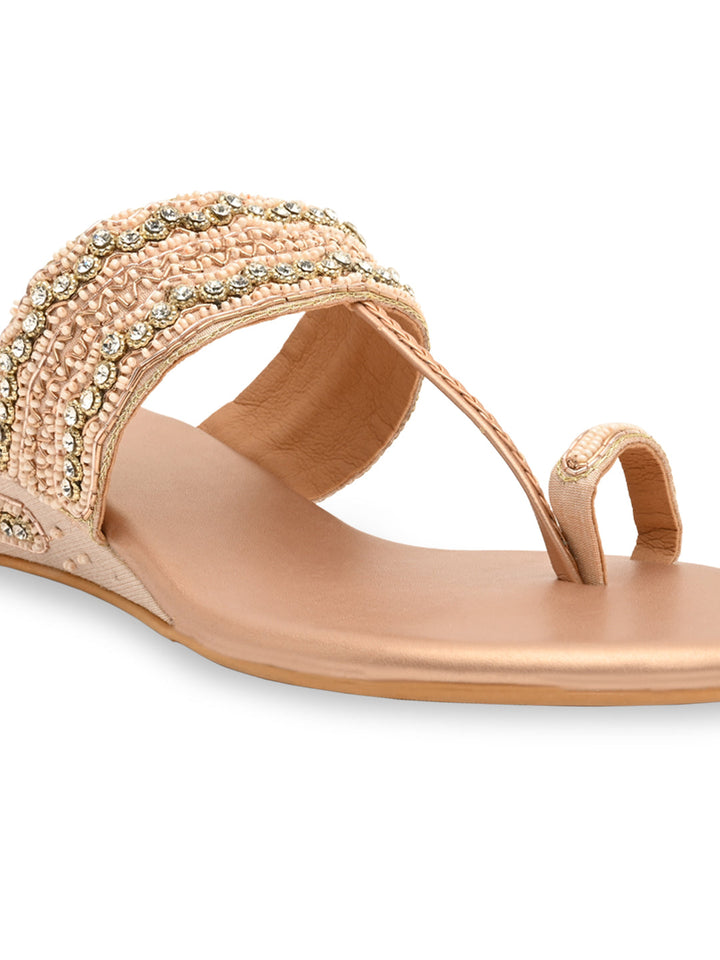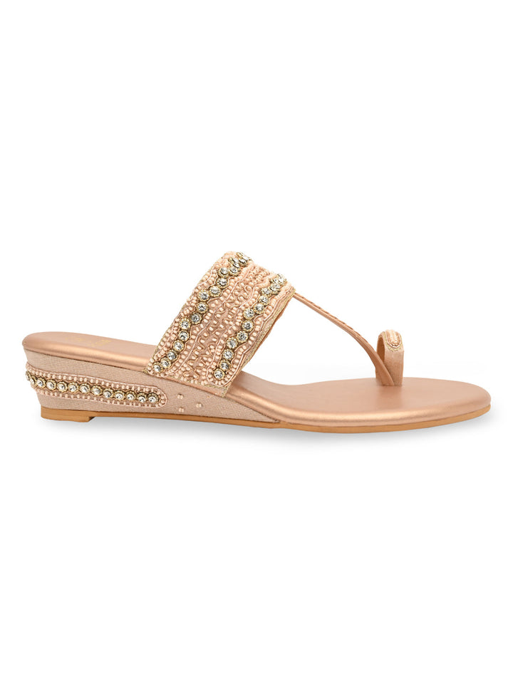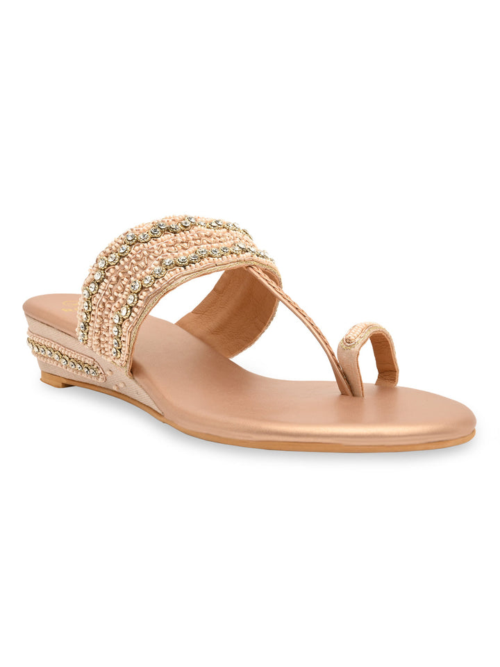 Experience artisanal beauty in these hand-embroidered one-toe wedges. The intricate detailing showcases fine craftsmanship, while the small wedge heel adds gentle elevation for all-day ease. Perfect for festive occasions or ethnic outfits, they bring together elegance and comfort seamlessly. A piece that celebrates traditional charm with a modern twist.