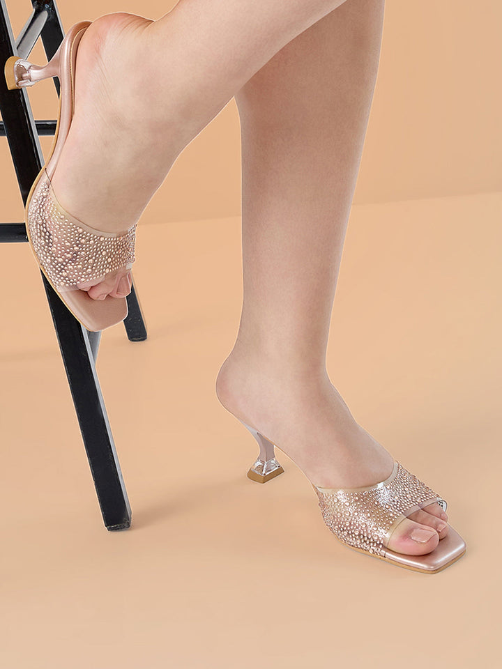Shine bright in these diamond-studded vinyl stilettos that redefine luxury. The transparent design gives them a bold, contemporary appeal, while the glimmering accents add sophistication. Lightweight and striking, they make every outfit runway-ready. Perfect for evening wear or glamorous events.