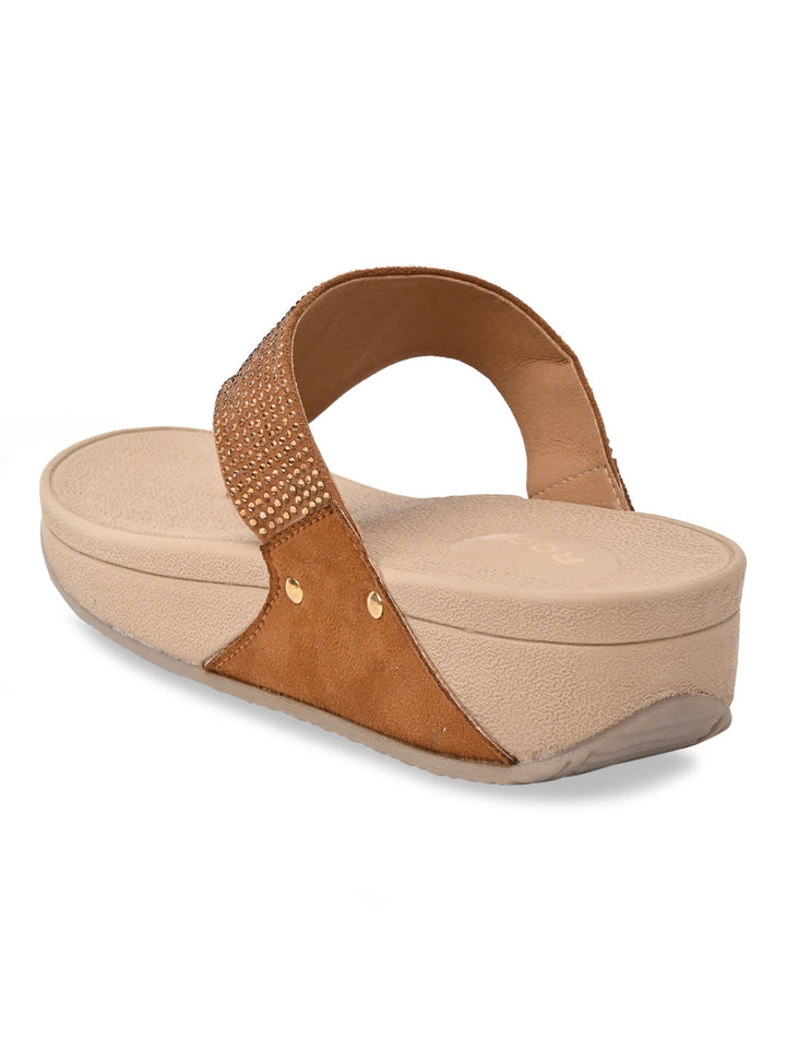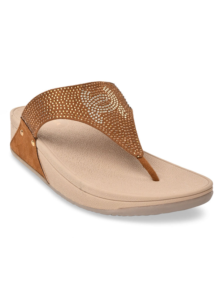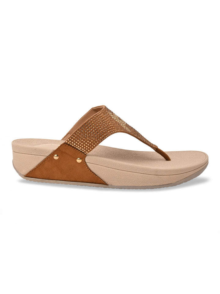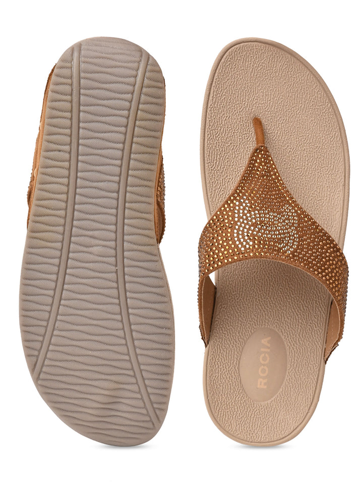 Shine all day in Rocia by Regal Grey Women Diamond Studded Comfort Wedges. These 2-inch synthetic wedge heels have TPR soles, slip-on closure, open round toes, and T-strap detailing, suited for casual summer elegance.