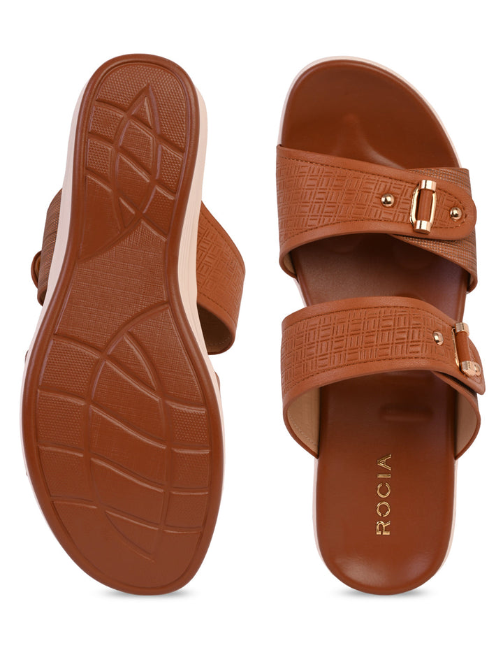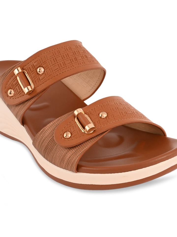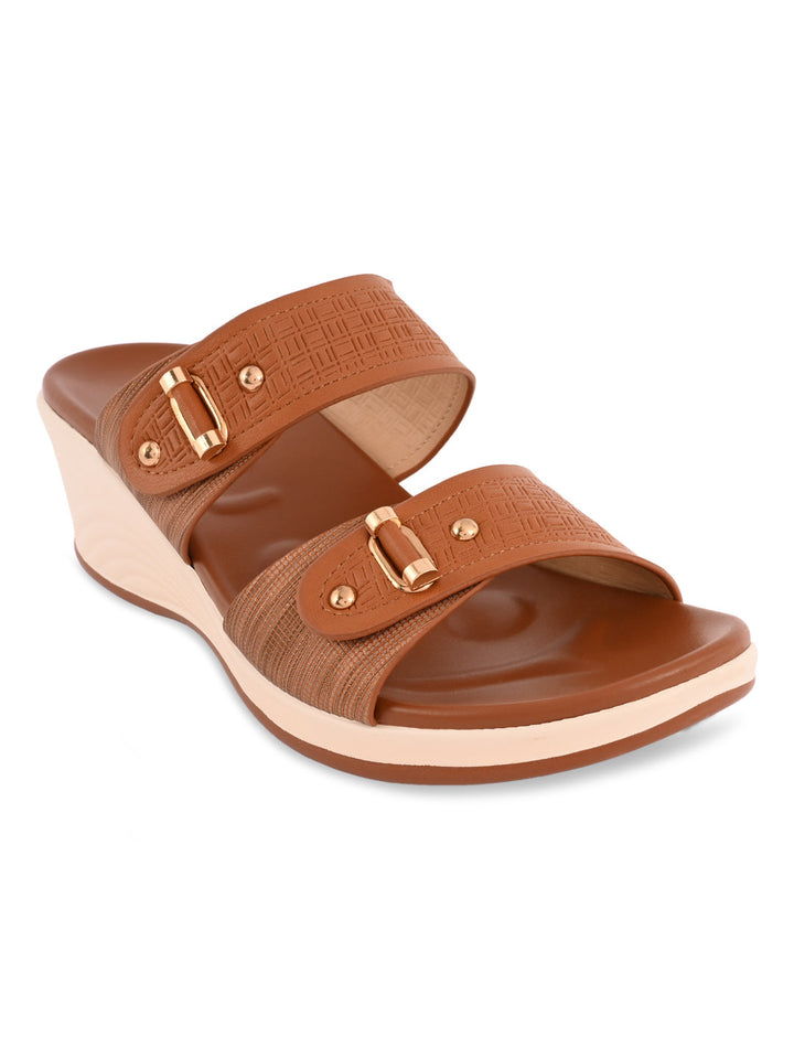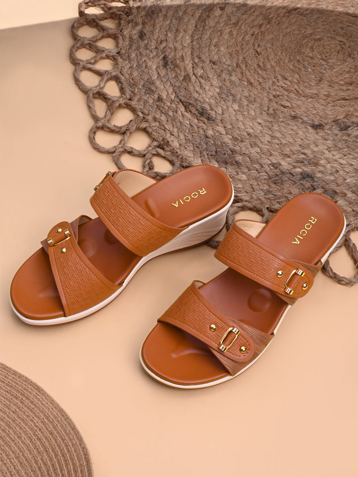 Step into everyday ease with Women Embossed Comfort Wedge Heels. Featuring embossed synthetic detailing and a PU sole, these slip-on wedges deliver both durability and chic appeal. The wedge heel offers stable comfort, making them a versatile choice for casual wear, summer looks, and laid-back styling. From Rocia by Regal.