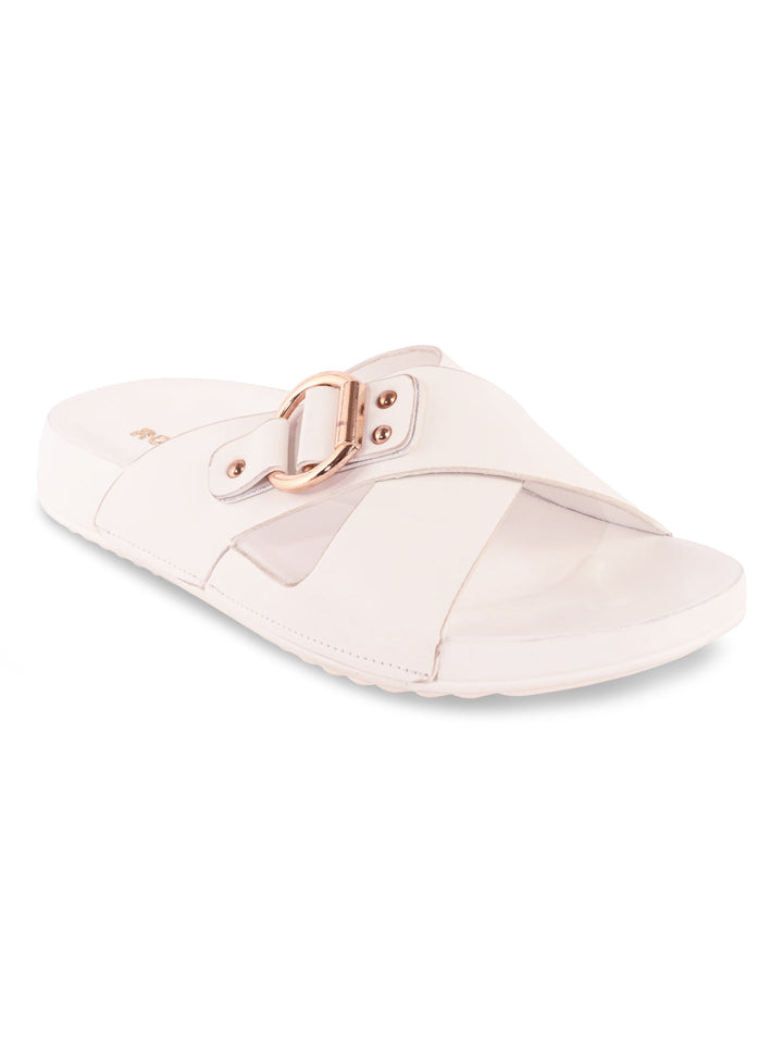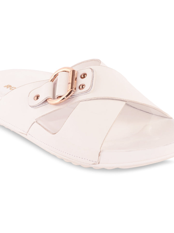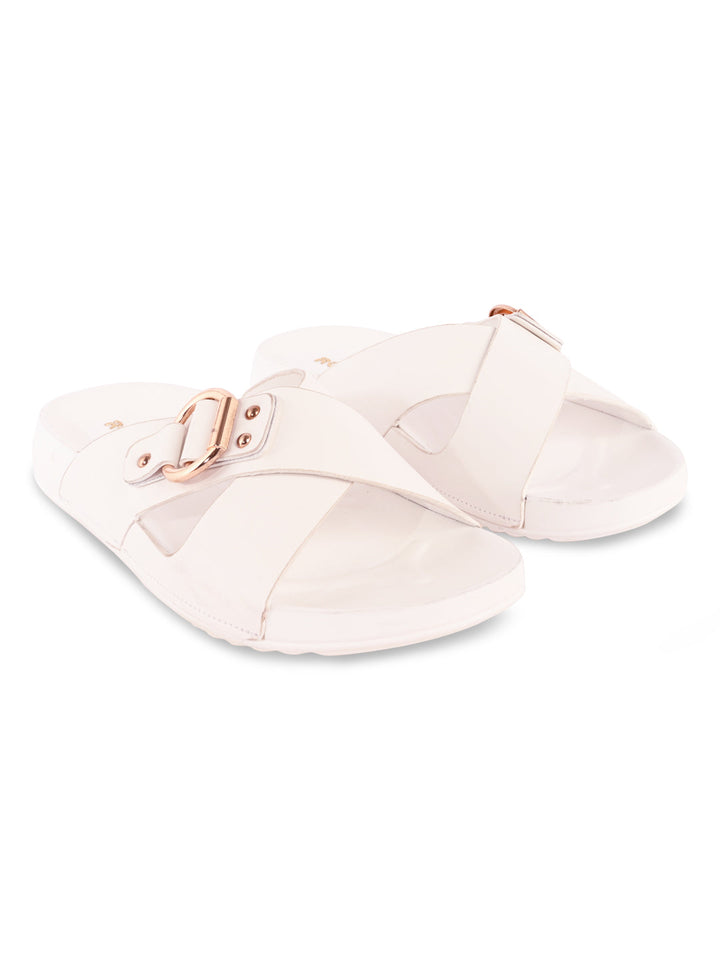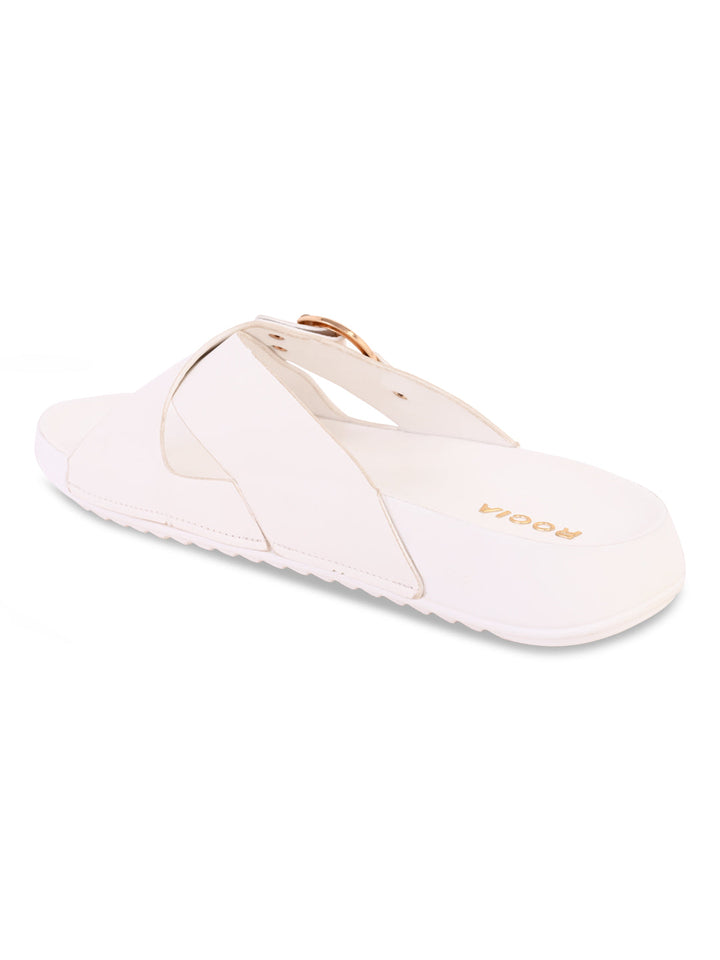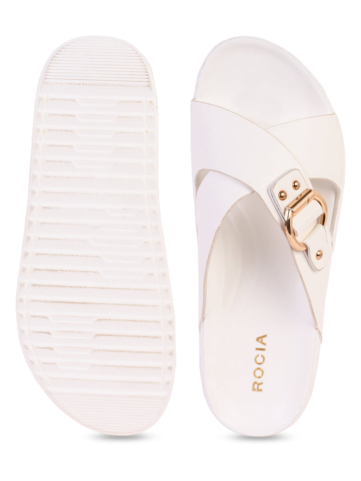 Women Buckled Stylish Flats from Rocia by Regal bring together sleek design and comfort, thanks to a durable synthetic body and flexible EVA sole. The strapless, open-toe silhouette with buckle detailing gives them a modern, fashion-forward appeal. With a flat heel that supports all-day wear, these flats are perfect for casual style and versatile pairings.