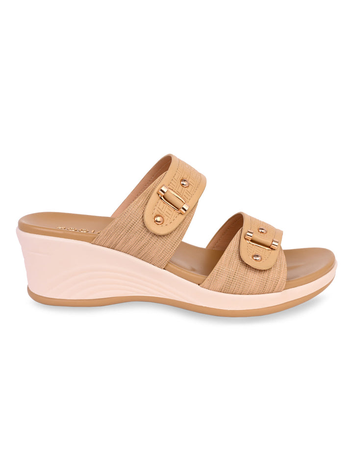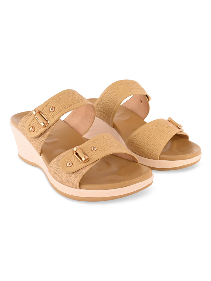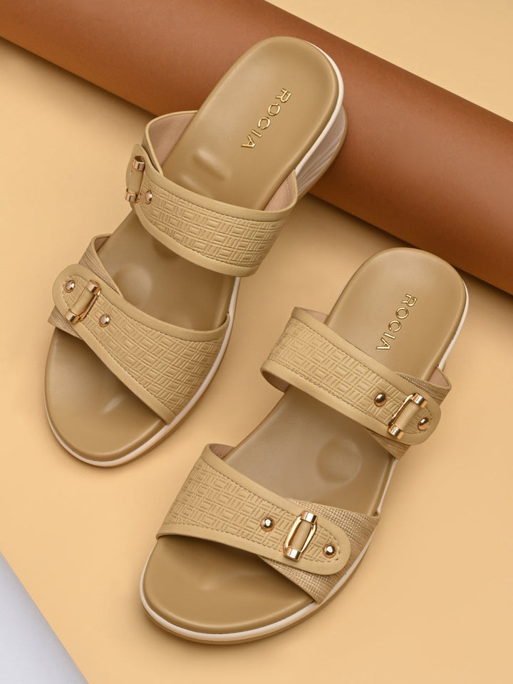 Step into everyday ease with Women Embossed Comfort Wedge Heels. Featuring embossed synthetic detailing and a PU sole, these slip-on wedges deliver both durability and chic appeal. The wedge heel offers stable comfort, making them a versatile choice for casual wear, summer looks, and laid-back styling. From Rocia by Regal.